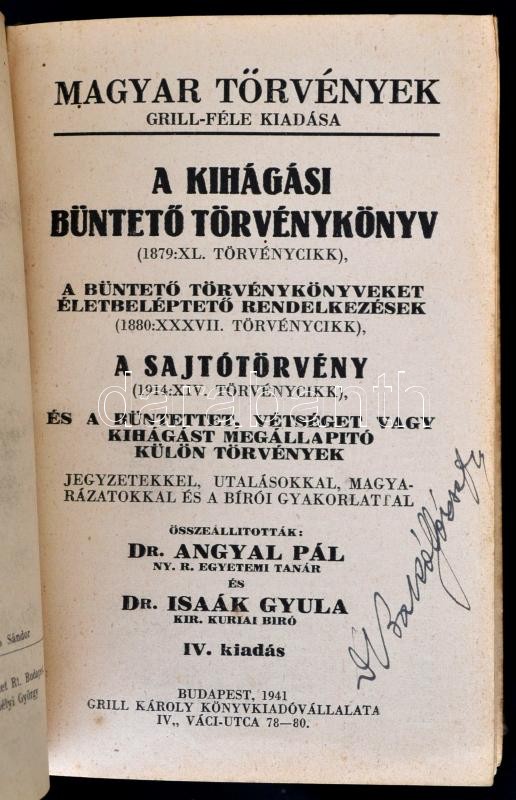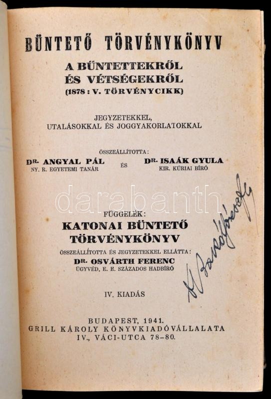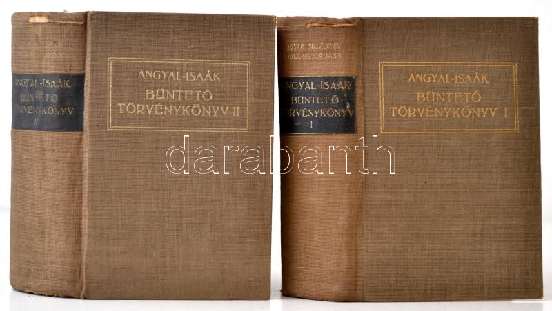 Dr. Angyal Pál - Dr. Isaák Gyula: Büntető törvénykönyv I-II. kötet. Bp... https://www.darabanth.com/en/337-Online-auction/337.0/Books/Books-Law~1000003/Dr-Angyal-Pal-Dr-Isaak-Gyula-Bunteto-torvenykonyv-I-II-kotet-Bp-1941-Grill-IV-ki~II1875512