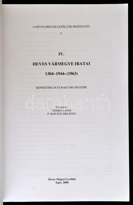 Nemes Lajos-P. Kovács Melinda: Heves Megyei Levéltár segédletei 5. IV.... https://www.darabanth.com/en/337-Online-auction/337.0/Books/Books-Travelling-Local-History~1000001/Nemes-Lajos-P-Kovacs-Melinda-Heves-Megyei-Leveltar-segedletei-5-IV-Heves-varmegye-iratai-13~II1891016