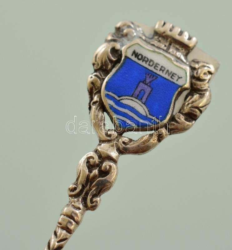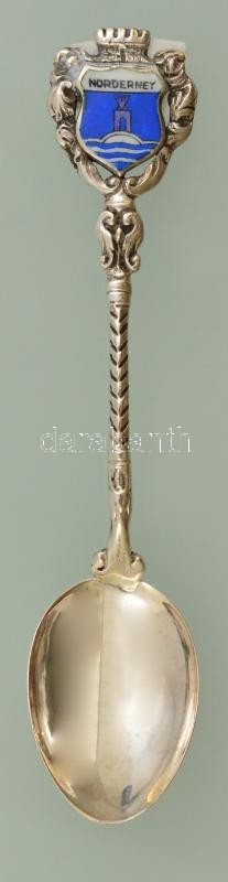 Ezüst (Ag) emlék kanál (Nordernet), zománc díszítéssel, jelzett, h: 10 cm, nettó: 8 g