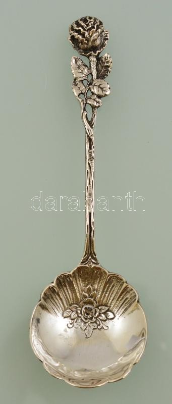 Ezüst (Ag) habos kanál, rózsa motívumos díszítéssel, jelzett, h: 15 cm, nettó: 27 g