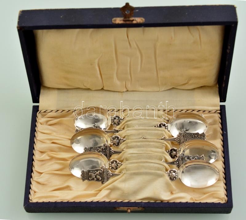 Ezüst (Ag.) holland kiskanál készlet (6 db), jelzett, nettó: 77 g, h:11,5 cm (6×), karton dobozban