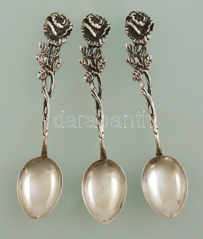 Ezüst (Ag.) rózsás mokkáskanál (3db), jelzett, h:9 cm (3×), nettó:18 g