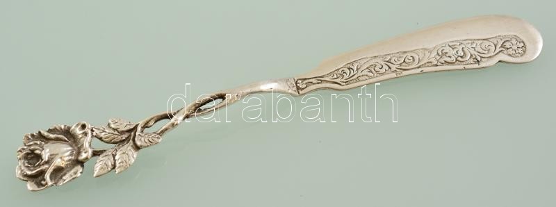Ezüst ( Ag.) rózsás vajkés, jelzett, h: 17 cm, nettó:27 g
