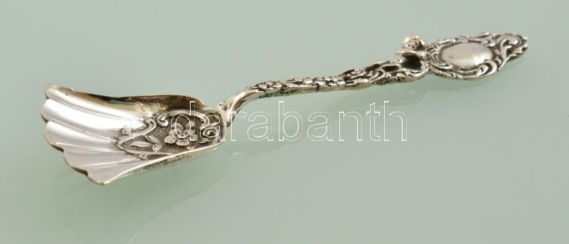 Ezüst (Ag.) teaadagoló kiskanál, jelzett, h:10,5 cm, nettó:18 g