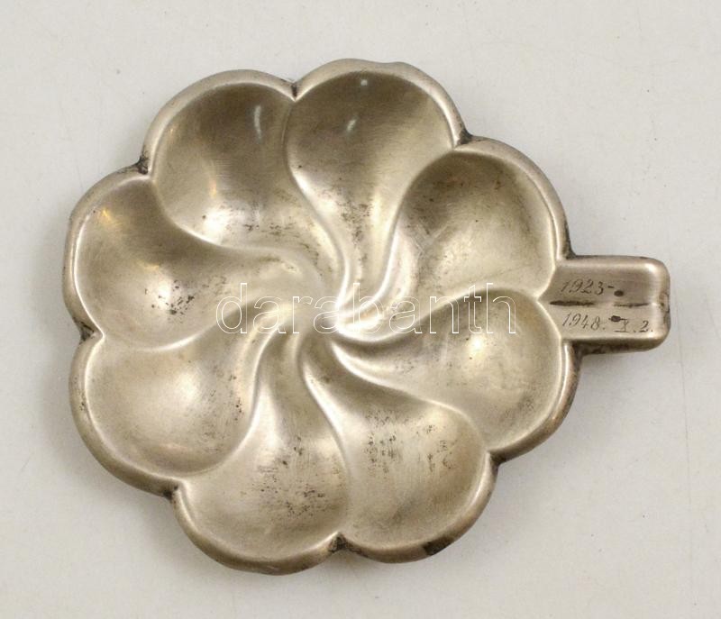 Ezüst(Ag) virág alakú tálka, jelzett, gravírozott évszámmal, 11,5×9,5 ...