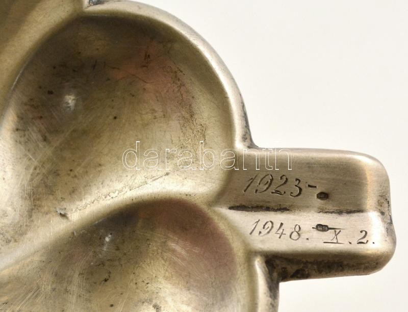 Ezüst(Ag) virág alakú tálka, jelzett, gravírozott évszámmal, 11,5×9,5 cm, nettó: 41,6 g