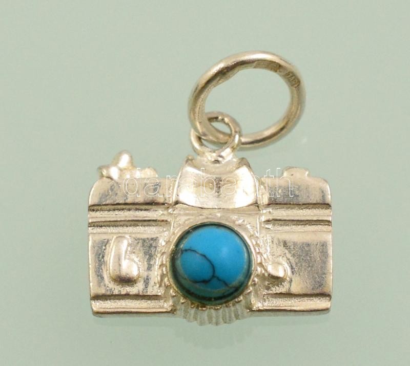 Fényképezőgép alakú ezüst (Ag.) kis medál türkiz berakással, jelzett, ...