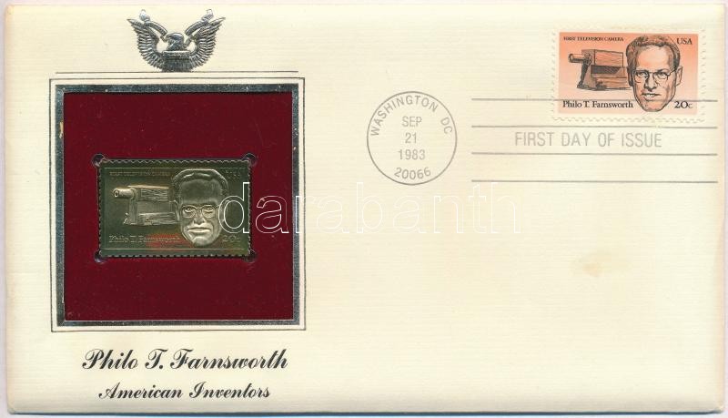 Amerikai Egyesült Államok 1983. "Philo T. Farnsworth" aranyo... https://www.darabanth.com/en/337-Online-auction/337.0/Numismatics/Envelopes-with-Coins-and-Banknotes~1500005/Amerikai-Egyesult-Allamok-1983-Philo-T-Farnsworth-aranyozott-belyegerem-boritekban-bely~II1890643