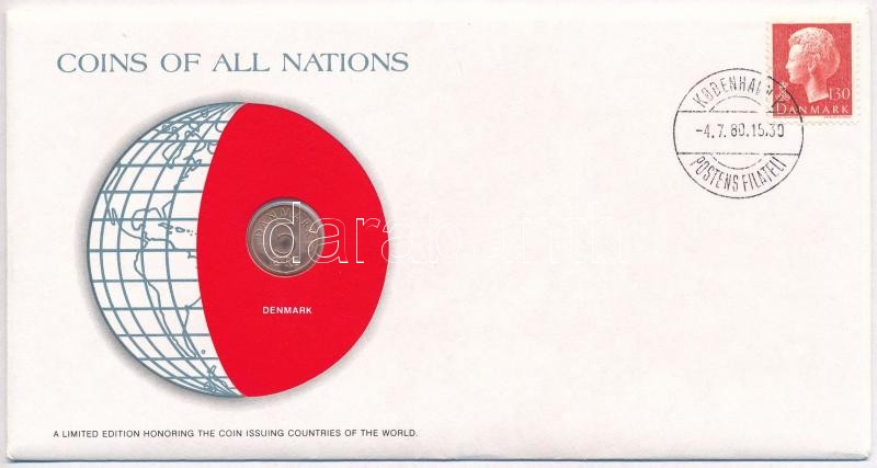 Description: Dánia 1977. 5ö "Nemzetek pénzérméi" felbélyegzett borítékban, bélyegzéssel, holland nyelvű leírással T:1-