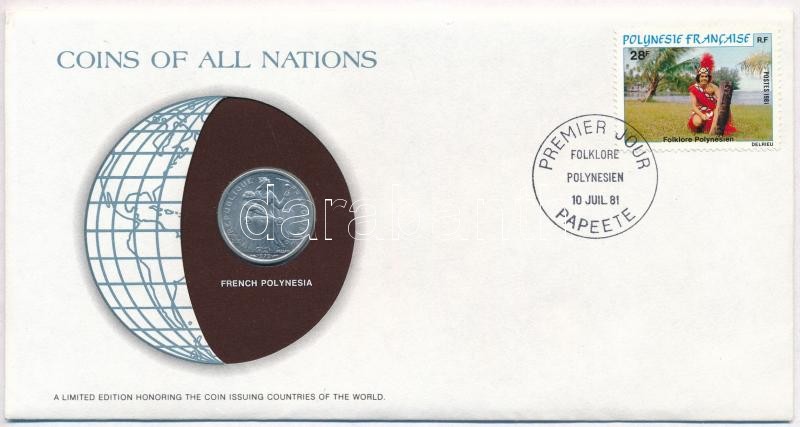 Description: Francia-Polinézia 1979. 1Fr "Nemzetek pénzérméi" felbélyegzett borítékban, bélyegzéssel, holland nyelvű leírással T:1-