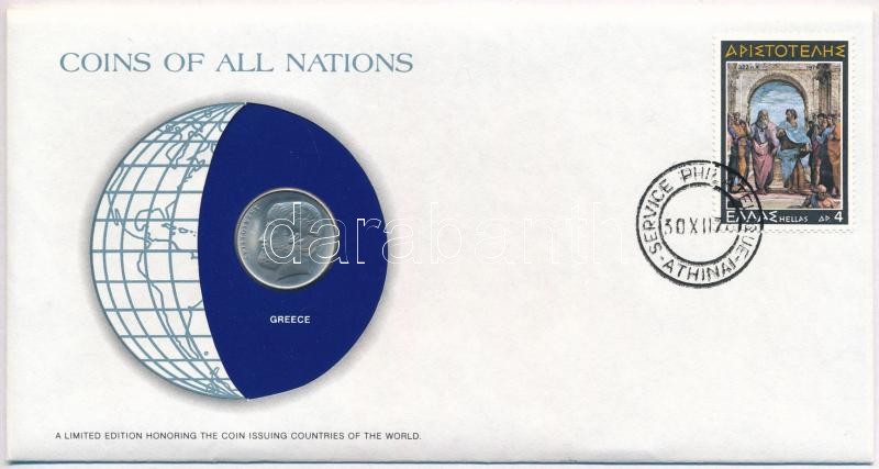 Greece 1976. 5 Drachmai "Coins of all Nations" in envelope with stamp and stamping, with Dutch description C:AU