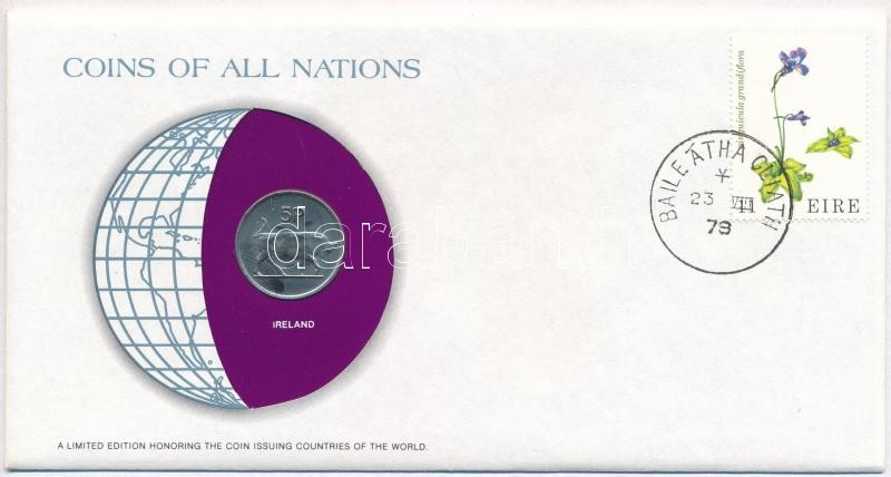 Ireland 1976. 5 Pingin "Coins of all Nations" in envelope with stamp and stamping, with Dutch description C:UNC,AU