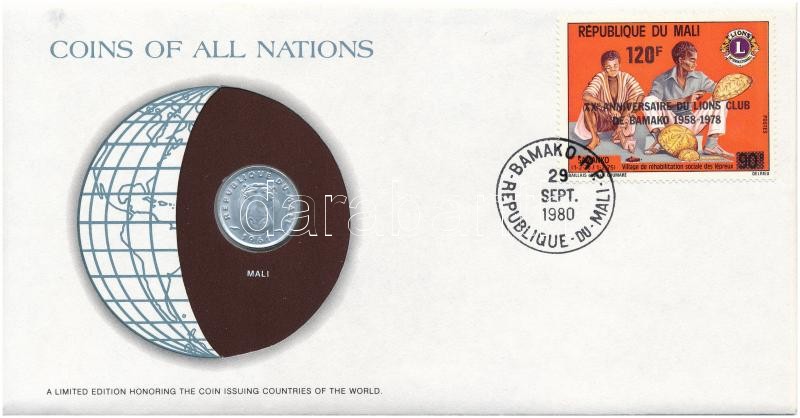 Description: Mali 1961. 5Fr "Nemzetek pénzérméi" felbélyegzett borítékban, bélyegzéssel, holland nyelvű leírással T:1-