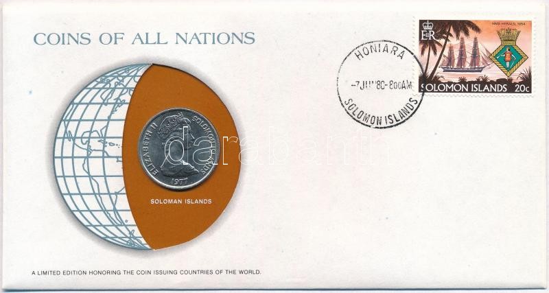 Solomon Islands 1977. 20 Cents "Coins of all Nations" in envelope with stamp and stamping, with Dutch description C:AU