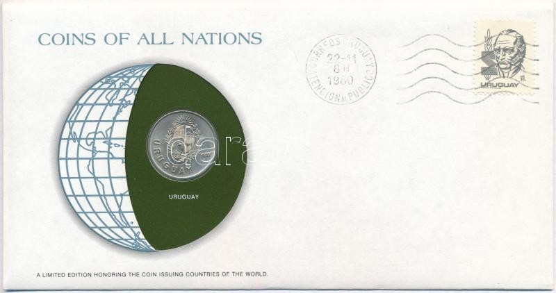 Uruguay 1980. 1 Peso "Coins of all Nations" in envelope with stamp and stamping, with Dutch description C:AU