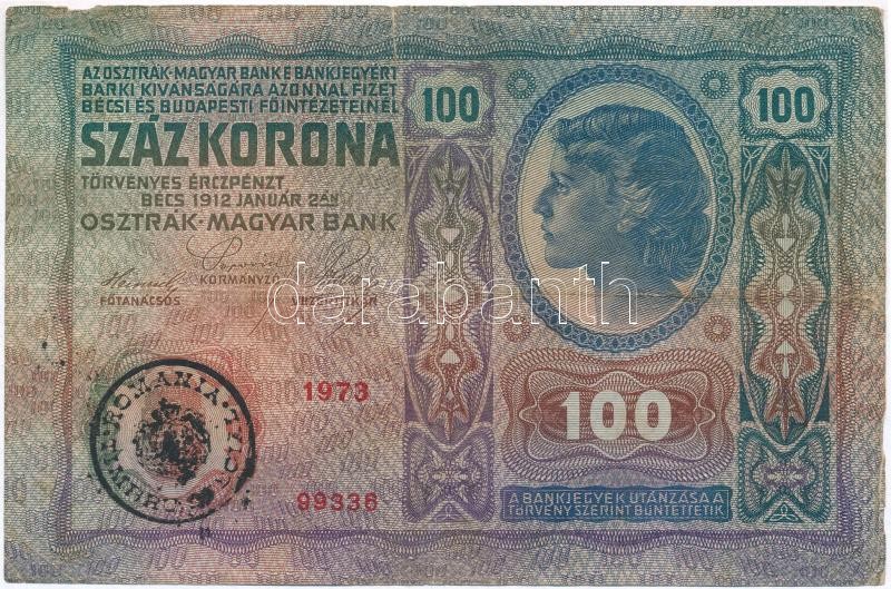 https://www.darabanth.com/en/337-Online-auction/337.0/Numismatics/Hungarian-Banknotes~2000085/1912-100K-fekete-ROMANIA-TIMBRU-SPECIAL-felulbelyegzessel-TIII~II1893566