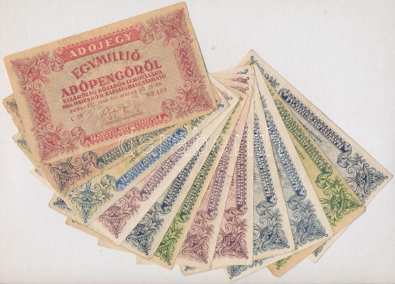 1946. 12db-os vegyes magyar adópengő bankjegy tétel, közte fordított c...