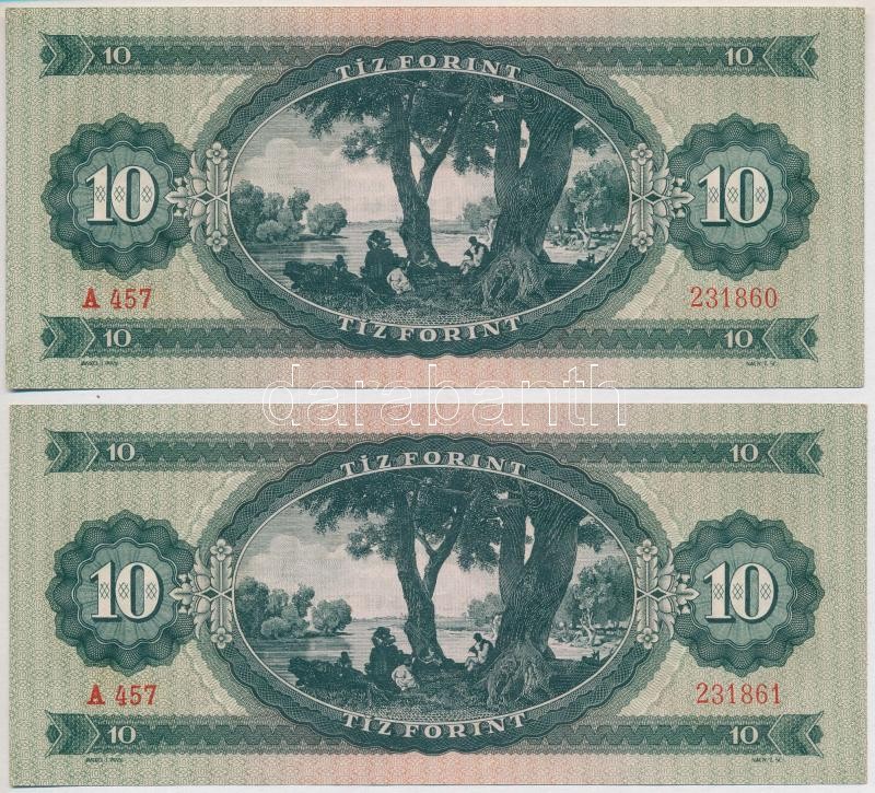 1949. 10Ft (2x) sorszámkövetők T:I- törés nélküli hajlás