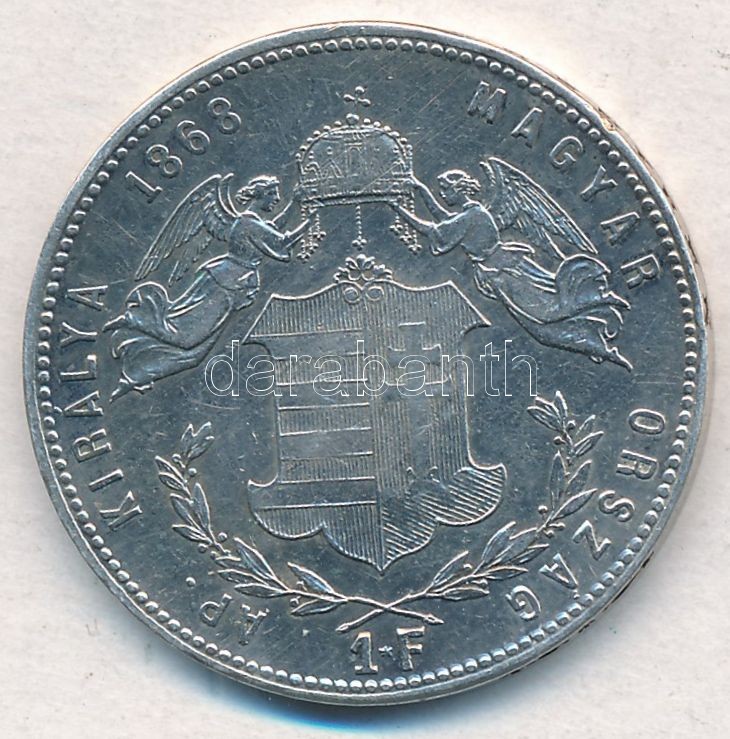 1868GYF 1Ft Ag "Ferenc József / Angyalos címer" Gyulafehérvá... https://www.darabanth.com/en/337-Online-auction/337.0/Numismatics/Hungarian-coins-and-coins-with-Hungarian-mint-marks~1500009/1868GYF-1Ft-Ag-Ferenc-Jozsef-Angyalos-cimer-Gyulafehervar-T2-2-kis-ph-Hungary-1868GYF-1-~II1888359
