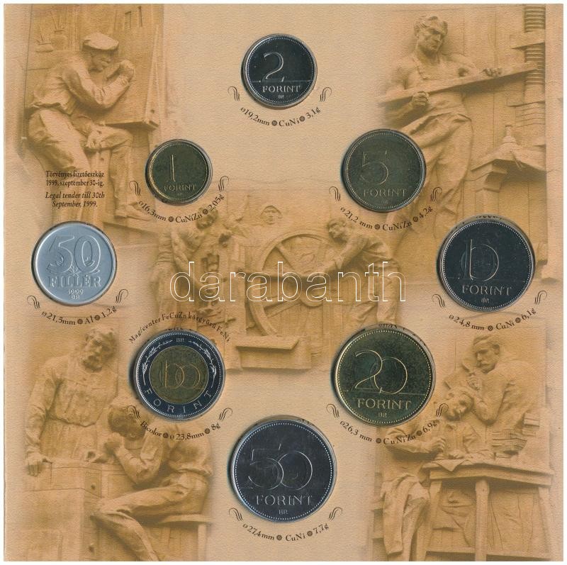 https://www.darabanth.com/en/337-Online-auction/337.0/Numismatics/Hungarian-coins-and-coins-with-Hungarian-mint-marks~1500009/1999-50f-100Ft-8xklf-forgalmi-sor-disztokban-TBU-kis-patina-Adamo-FO32~II1877539