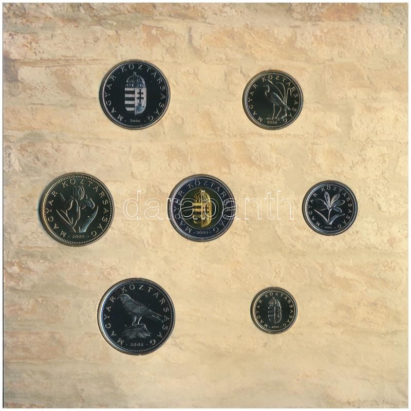 https://www.darabanth.com/en/337-Online-auction/337.0/Numismatics/Hungarian-coins-and-coins-with-Hungarian-mint-marks~1500009/2005-1Ft-100Ft-7xklf-forgalmi-sor-szettben-plus-2005-10Ft-Jozsef-Attila-TBU-Adamo-FO39~II1877488