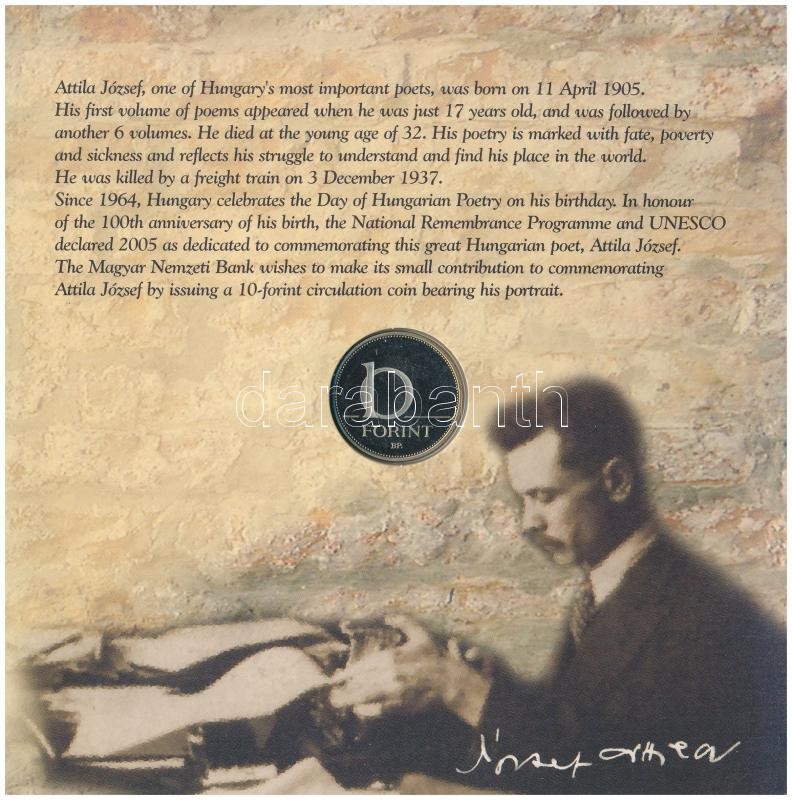 https://www.darabanth.com/en/337-Online-auction/337.0/Numismatics/Hungarian-coins-and-coins-with-Hungarian-mint-marks~1500009/2005-1Ft-100Ft-7xklf-forgalmi-sor-szettben-plus-2005-10Ft-Jozsef-Attila-TPP-Adamo-FO391~II1877492