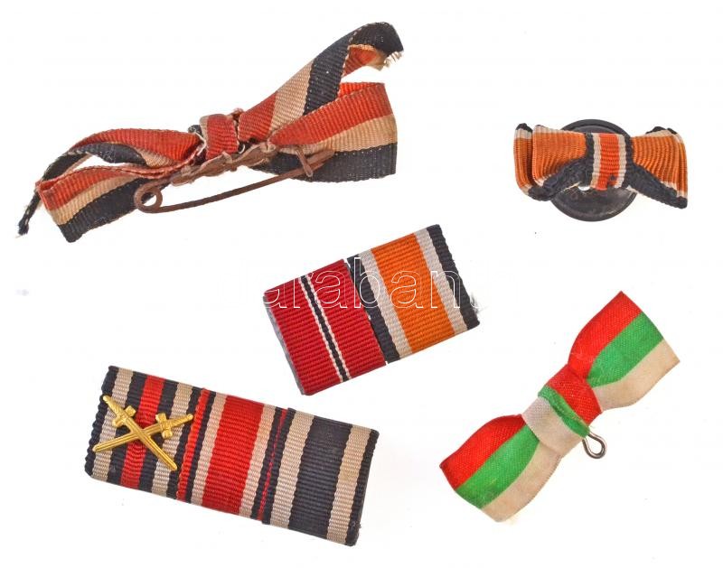Description: 5db szalagság és 3db szalag német kitüntetésekhez, közte 1942. "Az 1941/1942. évi Keleti Téli Hadjárat Emlékérme" szalag.