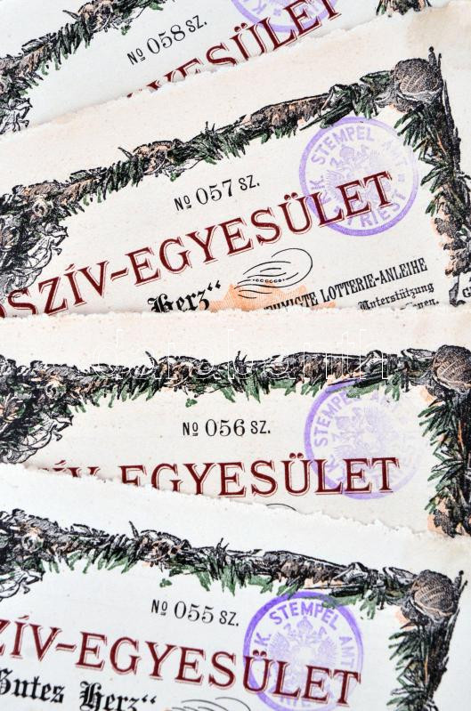 Budapest 1888. "Magyarországi Jószív Egyesület" sorsjegye 2Ft-ról (4x) sorszámkövetők, felülbélyegzéssel T:II