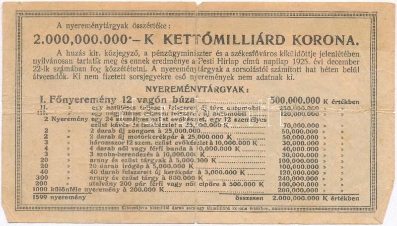 Budapest 1925. "Diák-Sorsjegy" 5000K értékben, "XIII." sorozat T:III-,IV