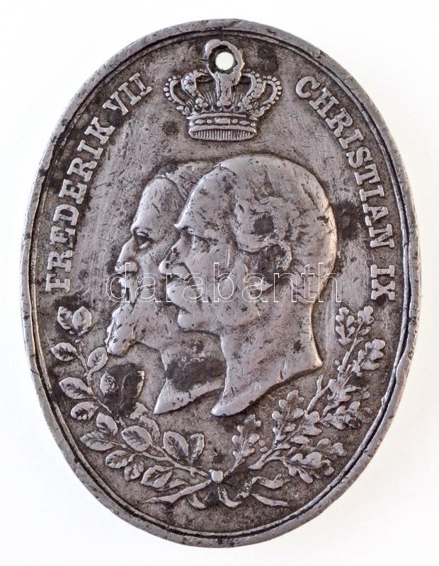 Dánia 1989. "VII. Frigyes / IX. Keresztély" ezüstözött fém e... https://www.darabanth.com/en/337-Online-auction/337.0/Numismatics/Worldwide-commemorative-medallions-and-plaques~1500015/Dania-1989-VII-Frigyes-IX-Keresztely-ezustozott-fem-emlekerem-furt-lyukkal-47x36mm~II1890981