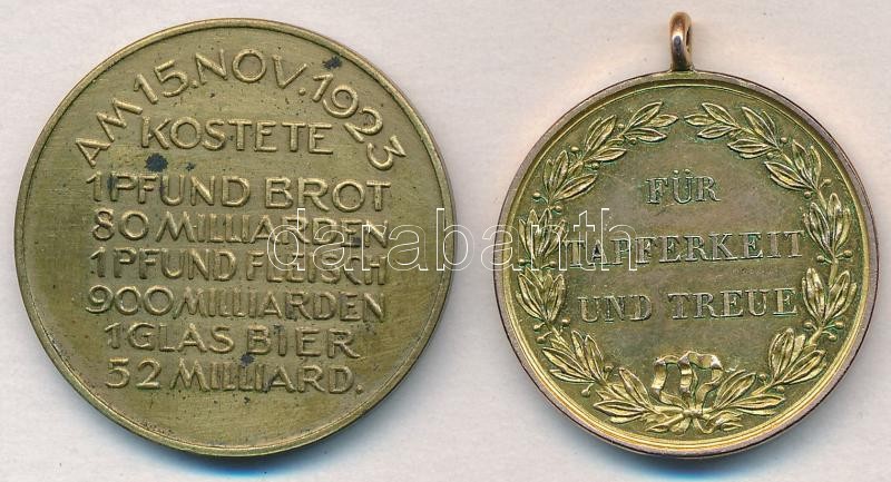 Német Államok / Württemberg 1892. "Arany Katonai Érdemérem" aranyozott fém kitüntetés utánverete? + Weimari Köztársaság 1923. "Des deutschen Volkes Leidensweg" Br emlékérem (32mm) T:2 ph.