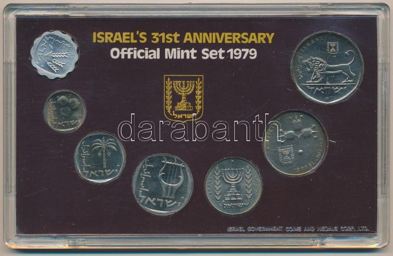 Izrael 1979. 1a-5L (7xklf) "Izrael 31. évfordulója" forgalmi... https://www.darabanth.com/en/337-Online-auction/337.0/Numismatics/Worldwide-silver-and-metal-coins~1500014/Izrael-1979-1a-5L-7xklf-Izrael-31-evforduloja-forgalmi-sor-tokban-tanusitvannyal-T1-1-~II1890189
