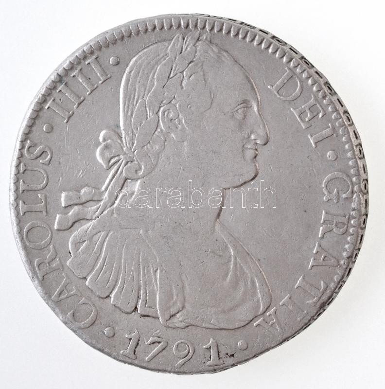 https://www.darabanth.com/en/337-Online-auction/337.0/Numismatics/Worldwide-silver-and-metal-coins~1500014/Mexiko-Spanyol-gyarmat-1791FM-8R-Ag-IV-Karoly-26-83g-T2-ph-Mexico-Spanish-Colony-1791F~II1894034