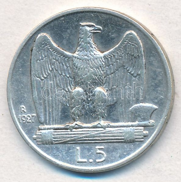 https://www.darabanth.com/en/337-Online-auction/337.0/Numismatics/Worldwide-silver-and-metal-coins~1500014/Olaszorszag-1927R-5L-Ag-III-Viktor-Emanuel-T2--Italy-1927R-5-Lire-Ag-Vittorio-Emanuele-III-~II1890968