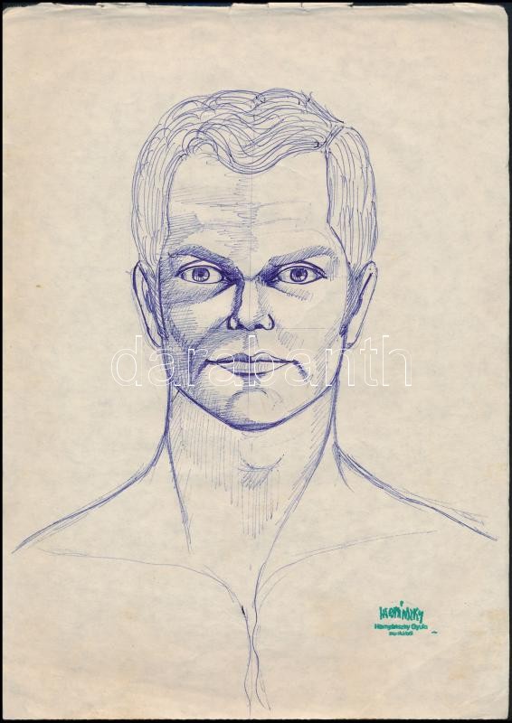 Hornyánszky hagyatéki pecsét jelzéssel: Férfi portré 2 db, toll, papír...