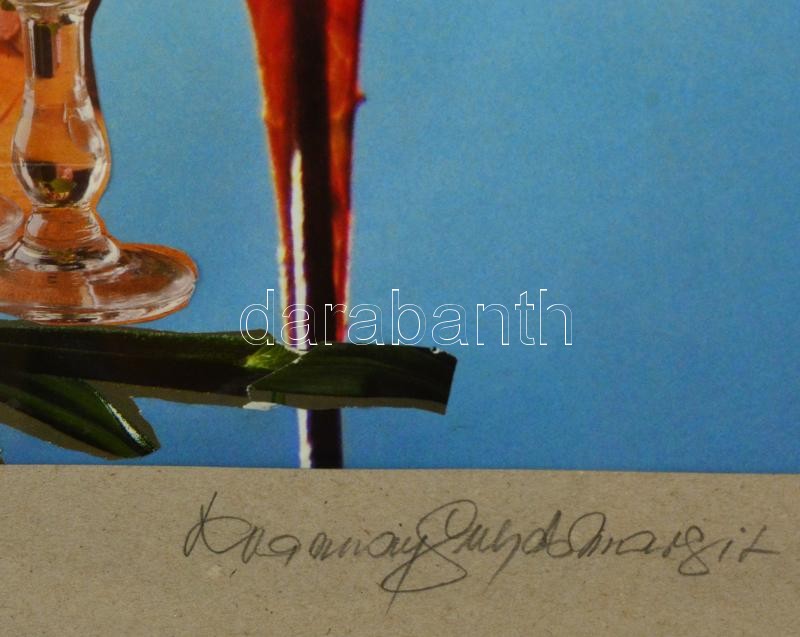 Kvasznay Gulyás Margit (1924-2013): Boros csendélet. Fotó montázs, jel...