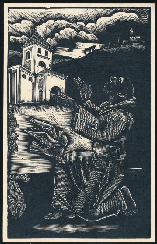 Molnár C. Pál (1894-1981): Szent Ferenc, fametszet, jelzés nélkül, pap...
