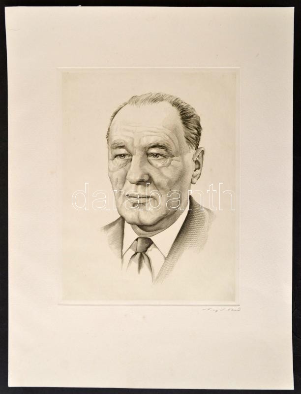 Nagy Zoltán (1916-1987): Kádár János. Rézkarc, papír, jelzett, 25×19 c...