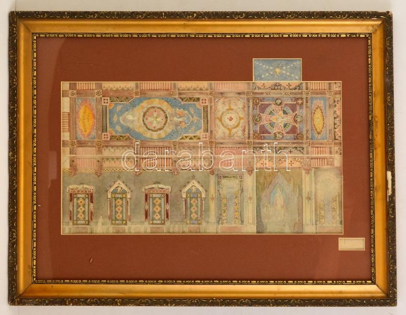 Olvashatatlan jelzéssel: Freskó terv, akvarell, papír, paszpartuban, ü...