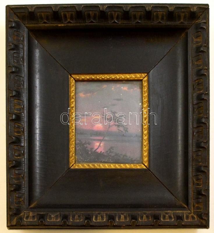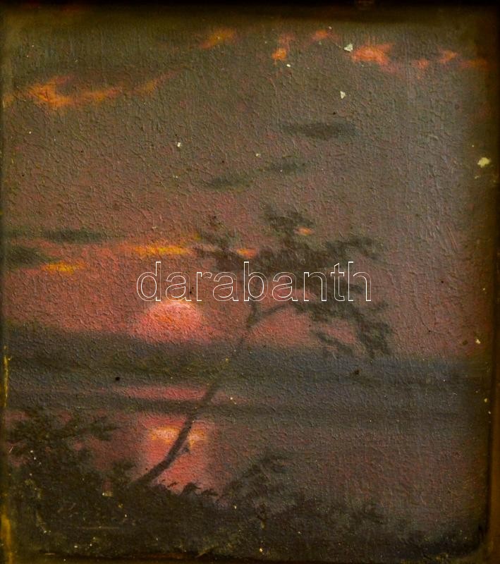 Olvashatatlan jelzéssel: Naplemente. Olaj, karton, üvegezett fa keretben, 11×9 cm