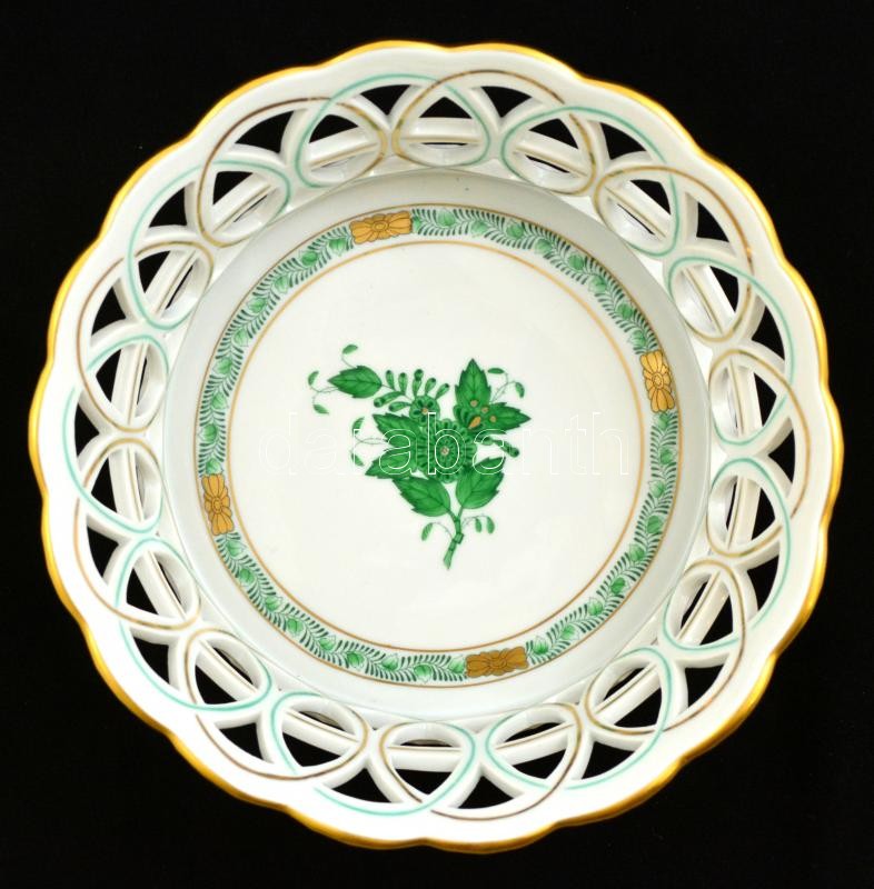 Herendi Apponyi mintás áttört kosár, kézzel festett, jelzett, hibátlan, d:18,5 cm