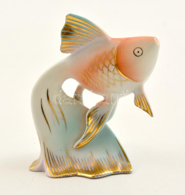 Hollóházi halacska, kézzel festett, jelzett, apró kopásokkal, m: 10 cm