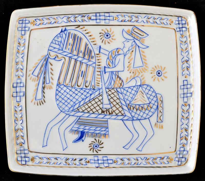 Holloházi lovagoló hölgy tálka, kézzel festett, jelzett, hibátlan, 17×19,5 cm