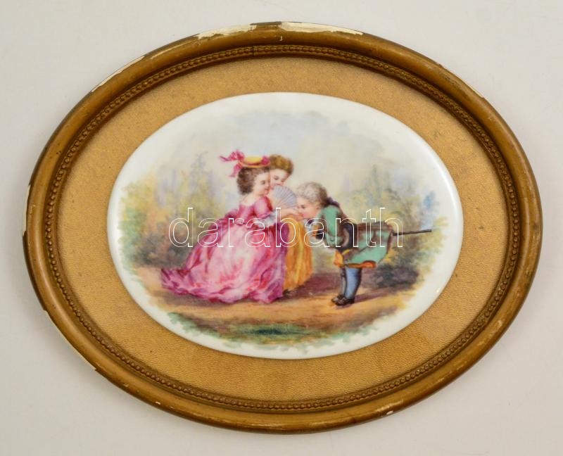Udvarló kisfiú porcelán falikép, kézzel festett, jelzés nélkül, hátold...