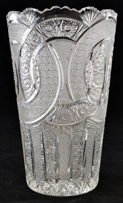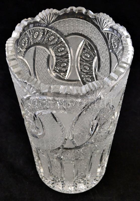 Ólomkristály váza, gazdagon csiszolt, hibátlan, jelzés nélkül, m:26, d...