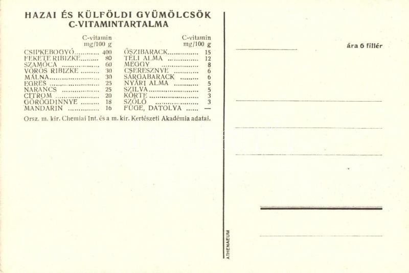 Orvosság helyett gyümölcsöt! Magyar egészségügyi propaganda, C-vitamin... https://www.darabanth.com/en/337-Online-auction/337.0/Postcards/Advertisement~2000075/Orvossag-helyett-gyumolcsot-Magyar-egeszsegugyi-propaganda-C-vitamin-tablazat-a-hatoldal~II1892800