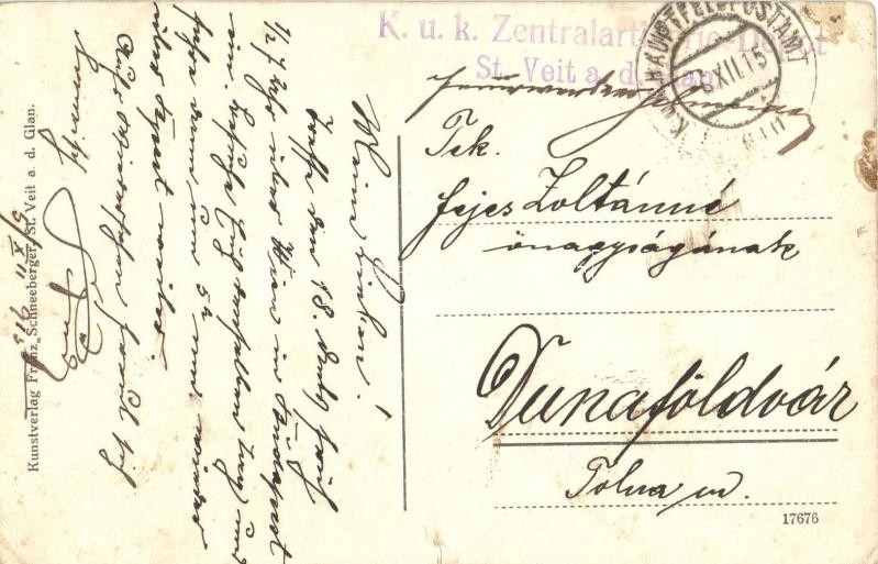 Description: 1915 Sankt Veit an der Glan, Sentvid ob Glini (Kärnten, Carinthia); Hauptplatz / main square. Kunstverlag Franz Schneeberger + K.u.K. Zentralartillerie-Depot St. Veit a. d. Glan (EB)