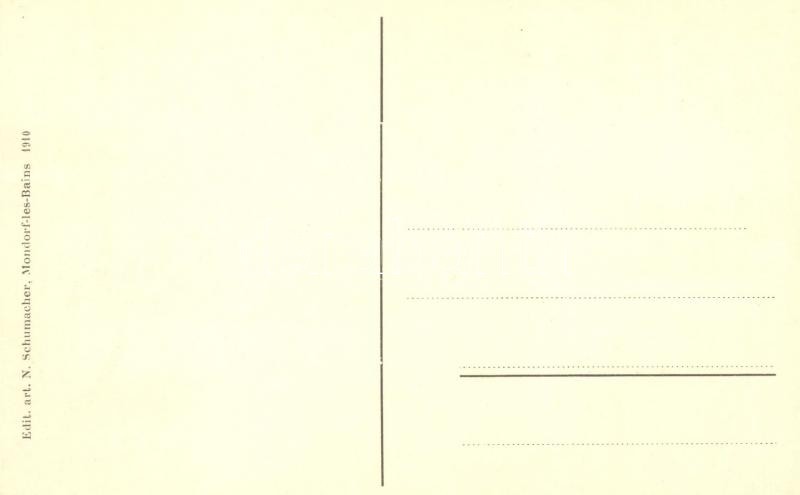 Description: Semaine d'aviation a Mondorf-les-Bains. Saison 1910, Premiers essais d'aviation / Flugwoche in Bad Monderf, Saison 1910, Erste Flugversuche / Aviation week in Mondorf-les-Bains. Season 1910, First Aviation Tests. Advertisement card with aircraft