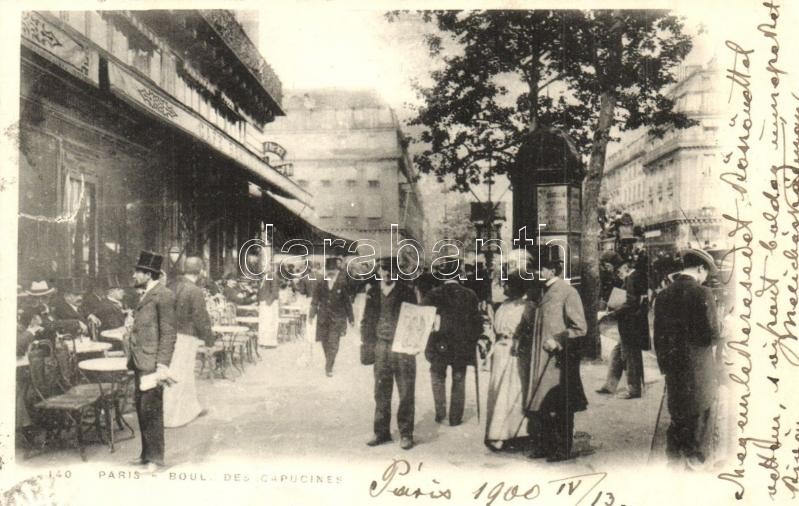 1900 Paris, Boulevard des Capucines / street view with cafe and restaurant terrace (EK)