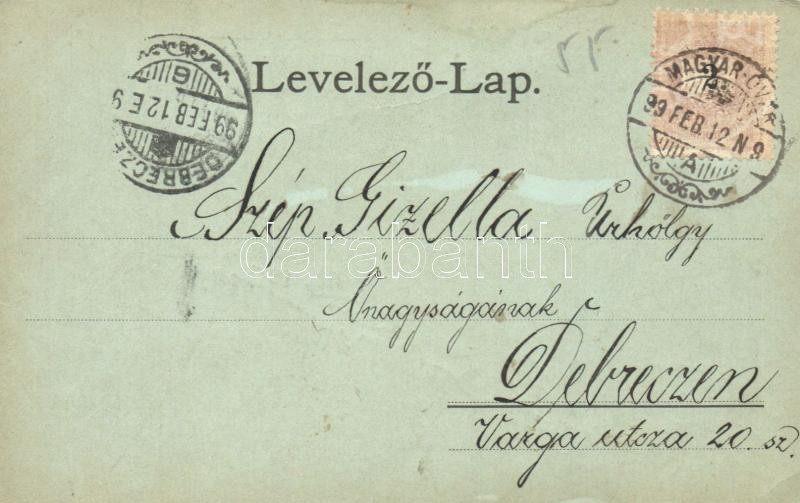 1899 Moson (Magyaróvár, Mosonmagyaróvár); Hauptgasse / Fő utca, templom. Art Nouveau, floral (EK)